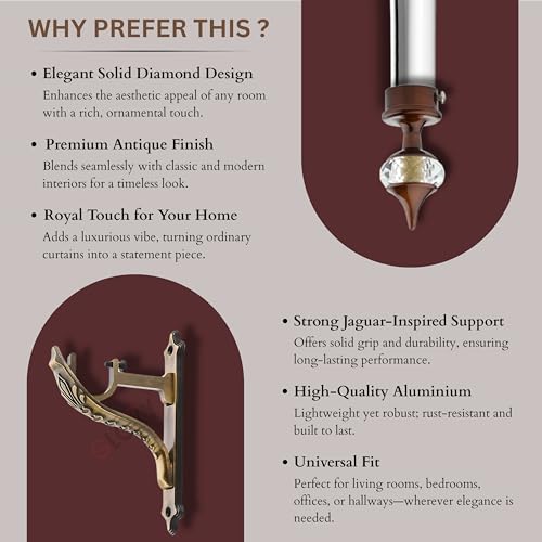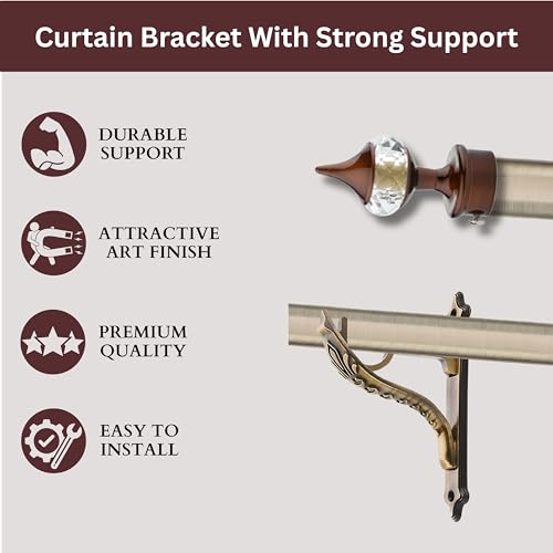 High-Quality Brass Build: Crafted with premium-grade brass, these curtain brackets resist rust and provide long-lasting performance. Compatible with curtain stand brackets, window curtain rod supports, curtain rod knob sets