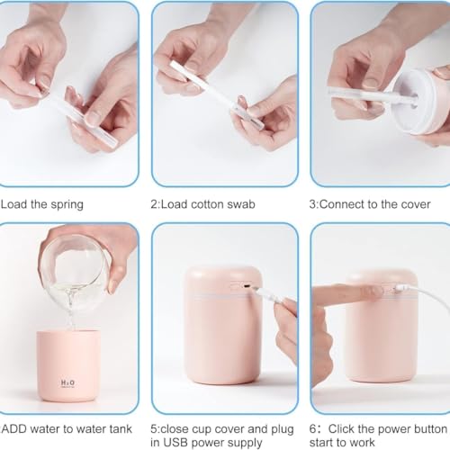 H2o_Humidifier 300ml Essential Oil Diffuser & Humidifier – Ultrasonic Cool Mist, Quiet Operation, LED Lights Aromatherapy Air Freshener for Home, Office, Car, Bedroom, Spa & Yoga