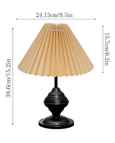 HomesakeĀ® Bedside Black Metal Table Lamp with Fabric Shade,Incandescent,E27 Holder,Urn,Desk Lamp,Night Lamp,Office,Nightstand,Table Lamp for Living Room,Study Room,Kids Room,Pleated(Hazelnut)
