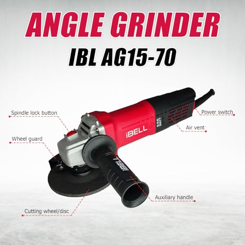 iBELL Angle Grinder AG15-70, 850W Heavy Duty, Copper Armature, Disc Dia 115mm, 11000 RPM with Grinding Wheel and Guard.