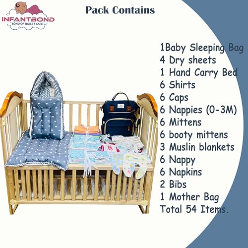 Introducing the Infantbond New Born Baby Premium Summer Essentials 54 In 1 Hospital Combo, designed to provide everything your little one needs for the first six months. This comprehensive set includes 54 carefully selected items made from high-quality, baby-safe materials to ensure maximum comfort and safety. From soft, breathable clothing to cozy blankets and essential toiletries, this combo is perfect for keeping your newborn comfortable and happy during the warmer months. Ideal for new parents, it takes the stress out of packing for the hospital and ensures you’re fully prepared for your baby’s arrival. Thoughtfully curated, this set makes an excellent gift for expecting parents, providing a convenient and complete solution for all your newborn’s needs. With Infantbond, you can be confident that you have everything necessary to welcome your baby into the world.