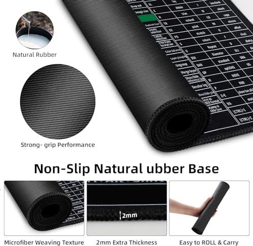 INOVERA Anti-Slip Gaming Mouse Pad | Shortcut Keys Rubber Stitched Mat |Desk Accessories for Laptop, Computer Home, Office (Black, 800L x 300B mm)