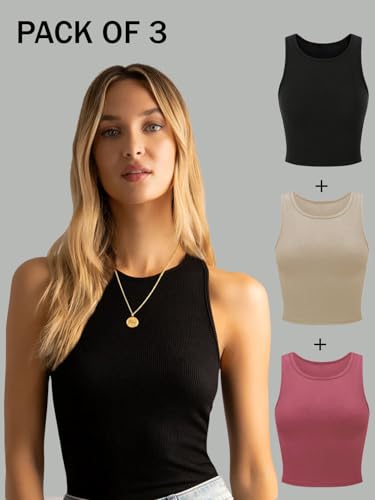 KERI PERRY Tops for Women Crop Top for Women’s Tank Activewear Tee Sports Western Casual Cotton Camisole Pack of 3 Combo