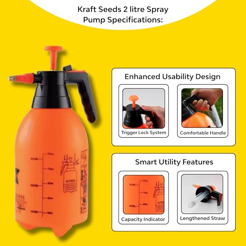 Kraft Seeds 2L Spray Pump for Plants | Garden Sprayer with Adjustable Brass Nozzle | Durable Plastic Water Spray Bottle for plants | Leak-Proof Plant Watering pump | Easy-Fill gardening watering can