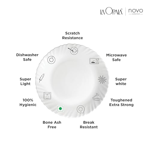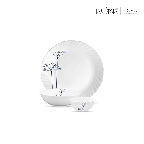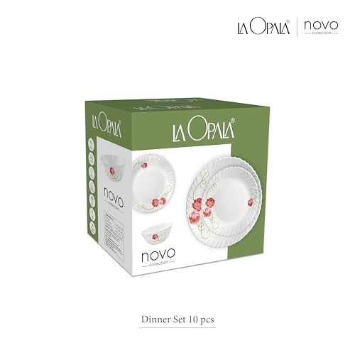 La Opala Novo Collection Opal Glass Crockery | for Family of 4 | Dinner Set 10 pcs Aqua Spray | Plates & Bowls for Dining | Microwave Safe | 100% Vegetarian | Extra Strong | Light & White