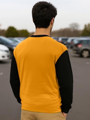 LEOTUDE Oversized Full Sleeve Cottonblend Graphic Printed Round Neck Drop Shoulder Tshirt for Man (Color Mustard)
