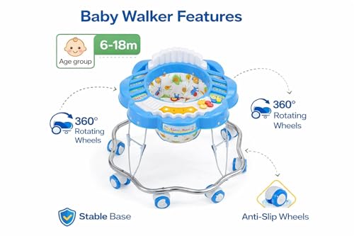 Maanit Musical Activity Walker Ideal for Kids, Boys and Girls, Indoor and Outdoor, Metal Baby Walking (Blue, White)