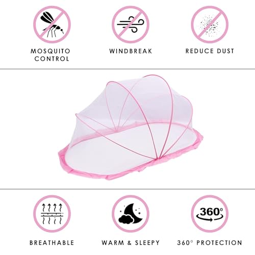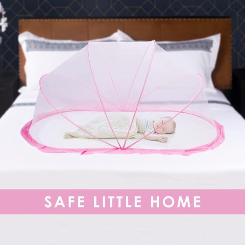 Mahi Fashion Baby Mosquito Net, Foldable Bottomless Design, Nylon & Polyester, 135 x 65 x 65 cm, Oval Shape, for Infants and Toddlers 0-24 Months (Pink)