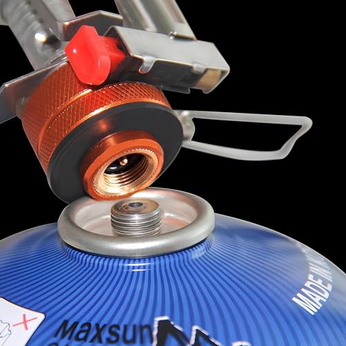 The anti-slip pot support arms fold out to form a stable, balanced cooking surface. They securely hold small to medium cookware items such as kettles, frying pans, coffee pots and stainless steel camping utensils, minimizing the risk of slipping. The flame adjustment knob gives you complete control over heat output, enabling slow simmering or high flame boiling as needed.