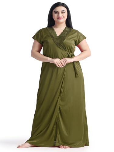 Night Keys Women Nighty with Robe Free Honeymoon Two Piecs Nighty Set
