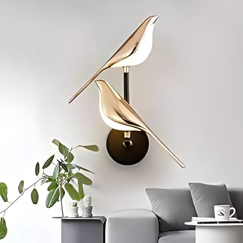 One94Store Double Bird Decorative Wall Lamp – Gold Finish Metal LED Wall Light Fixture for Living Room, Bedroom, Staircase & Home Décor – Modern Artistic Design