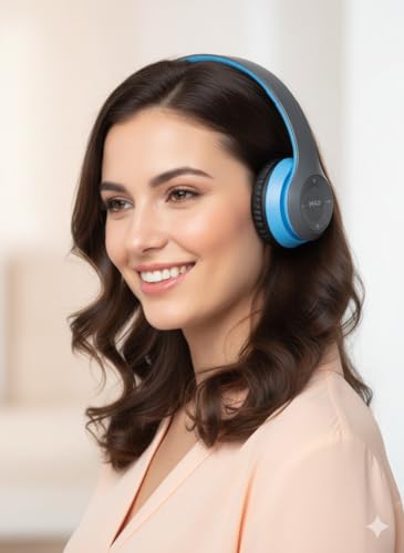 P47 Bluetooth Over-Ear Headphones ? Deep Bass, Foldable Design, HD Microphone, Noise-Cancelling, Comfortable Cushioned Earpads for Calls & Music