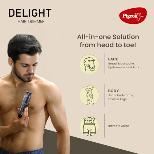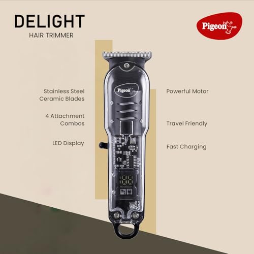 Pigeon Delight Battery Powered Beard Trimmer for Men| Stainless Steel Blade| USB C type Charging| 1.5Hr runtime| 2 HR charge time | 2 Years Warranty
