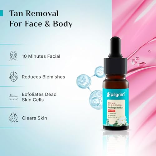 Pilgrim 25% AHA + 2% BHA + 5% PHA Peeling Solution 10ml For Face & Body |10-Minute Facial At Home|Gentle Exfoliating Serum for Tan Removal |For Glowing Skin, Even Skin Tone, Pore Cleansing |Men, Women
