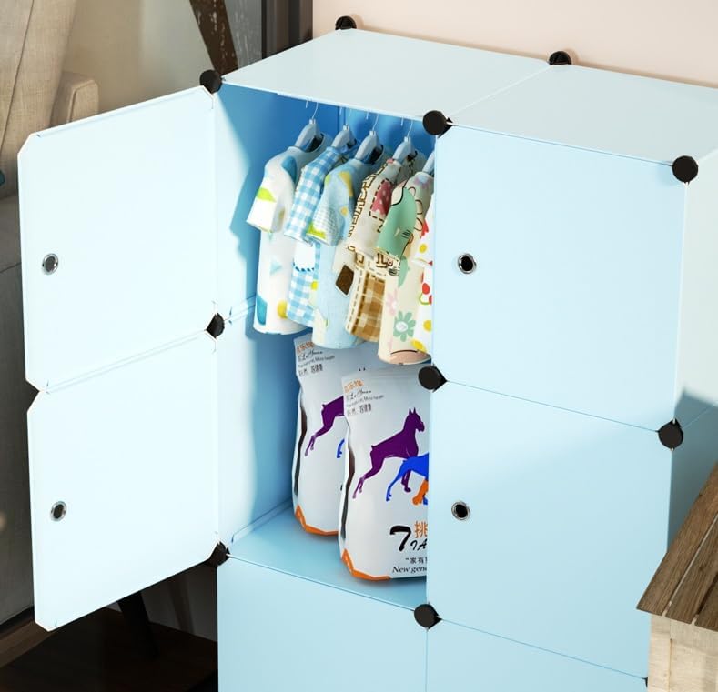 Plastic Wardrobe for Kids Clothes – Durable, Easy to Use Anti-Skid & Non-Slip Effective Professional Collapsible Wardrobe, Plastic Cupboard for Kids, Foldable Almirah (Blue-W3, 6 Door)