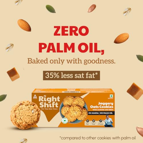 Right Shift brings jaggery cookies to fuel your best years. Instead of maida or refined sugar, we use 3X Oats, nuts, seeds and right amount of jaggery to get the delicious crunch.Our cookies are baked with love and care and don’t have any preservatives, added colurs or artificial flavours. Indulge in these cookies anytime guiltfree with your tea/coffee, on the go or to satisfy those hunger pangs. Also try our delicious jaggery ragi cookies with almonds and seeds.
