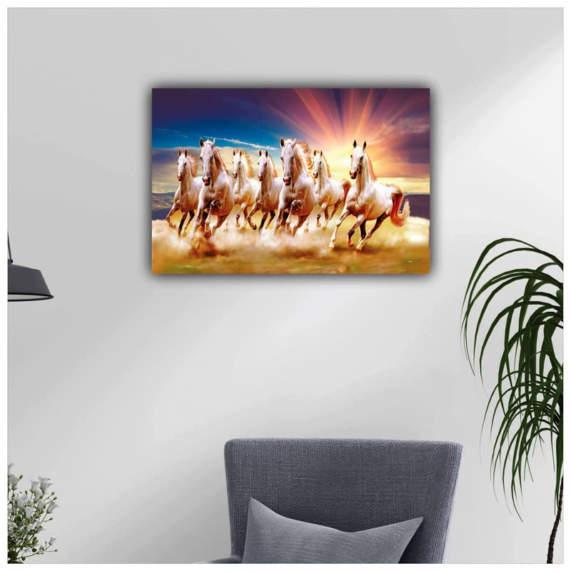 SAF paintings 7 Running Horses Vastu UV Textured Wall Painting for Home Decoration, Office, Gym, College Wall decoration Painting 12 Inch x 18 Inch MDF1457