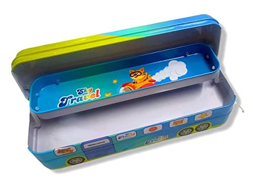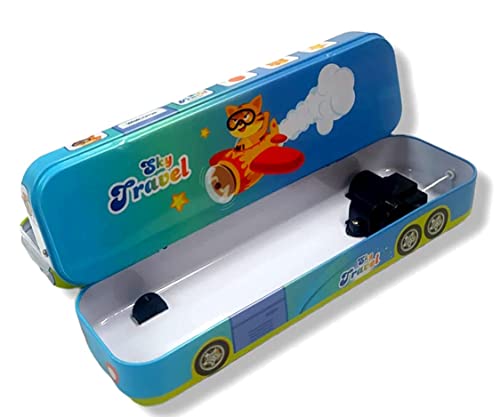 Sky travel theme bus design: The pencil box features a unique sky travel theme with a bus design, igniting the imagination of kids and providing a sense of adventure. The captivating artwork showcases the sky, clouds, and a whimsical bus, making it a fun and engaging stationery accessory.