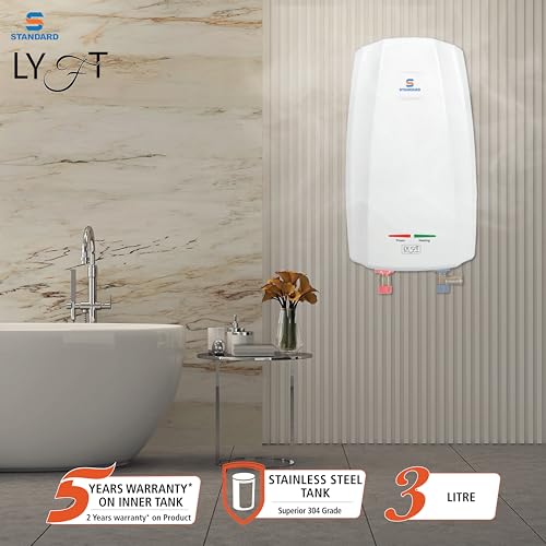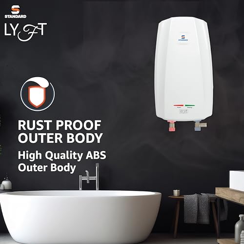 Standard By Havells Lyft 3 Litre Instant Water Geyser 3000 Watts | Stainless Steel Tank | Rust Proof Body | Automatic Cut Off | 5 Year Inner Tank Warranty, 2 Year Comprehensive Warranty (White)