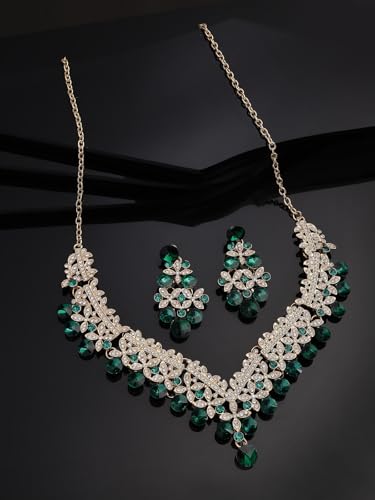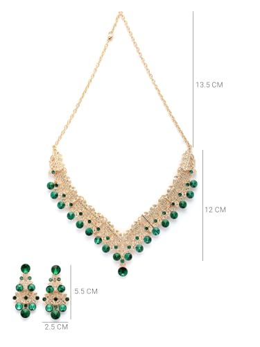 Sukkhi Inspiring Fashionable AD Stone Diamond Studded Gold Plated Green Choker Necklace with Dangle Earring Jewellery Set For Women & Girls|NS107352|Make a statement with the Sukkhi Inspiring Fashionable Gold Plated Green Choker Necklace set, featuring sparkling AD Stone diamond accents. This exquisite set includes matching dangle earrings that complement the choker’s elegant design. The gold plating adds a warm tone that highlights the vibrant green stones, creating a captivating look perfect for festive occasions and special events. Designed for women and girls who love eye-catching accessories, this jewellery set combines traditional charm with contemporary style. Add this set to your collection to enhance your ethnic outfits with a touch of brilliance and sophistication that stands out effortlessly.