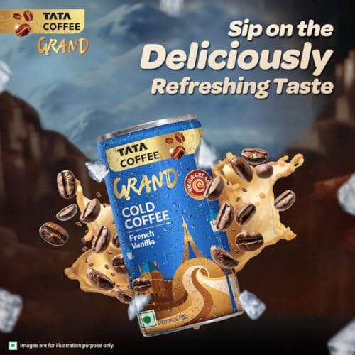 Savor the taste of rich and delicious Tata Coffee Grand Cold Coffee – French Vanilla. Inspired by the charming cafes of France, this rich and creamy cold coffee delight combines deep notes of vanilla with robust coffee, creating a perfect beverage for the breezy romantic in you. It offers a smooth, indulgent experience ready to enjoy on the go. Usage Instructions: ● Store in a cool, dry place. ● Best enjoyed chilled– perfect for an ice-cold coffee or iced coffee Experience. ● Shake well before consumption to ensure a consistent, creamy texture. ● Avoid consuming if the cold coffee can is puffed or leaky. Whether you’re seeking a refreshing pick-me-up or a moment of indulgence, Tata Coffee Grand Cold Coffee – French Vanilla is your ultimate cold coffee drink. Try this cold coffee today and experience the rich taste of a ready to drink cold coffee crafted just for you!
