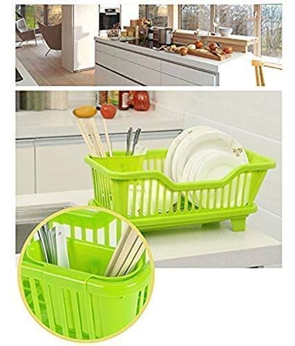 TEKCOOL Plastic Durable Kitchen Drainer Dish Rack Organizer/Drying Tray, Dish Rack with Drying Tray (Green, 45 x 32 x 18 cm, Green)