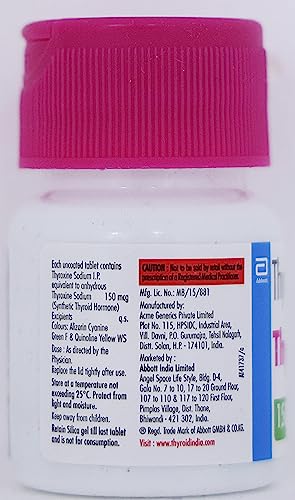 Composition: Each uncoated tablet contains: Thyroxine Sodium I.P. equivalent to anhydrous Thyroxine Sodium 150 mcg. (Synthetic Thyroid Hormone) Excipients q.s.