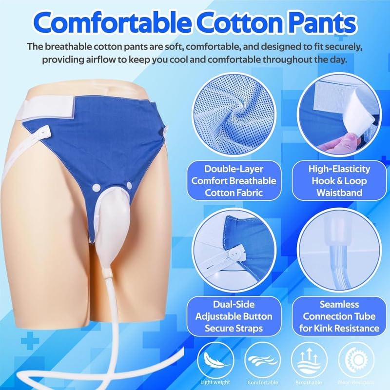 EASY, NATURAL WEARABILITY: With an ergonomic shape that mimics standard underwear, this system fits seamlessly into your day. A flexible urine tube and secure, calf-tied collection bag let you move freely without worries about leaks or discomfort. Embrace hassle-free confidence at home or on the go.