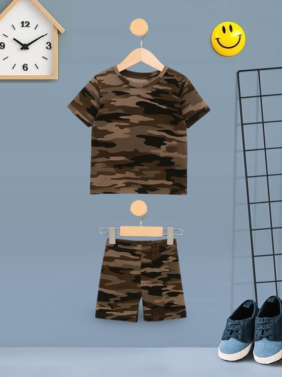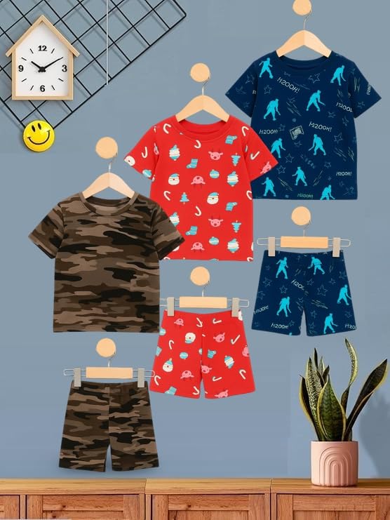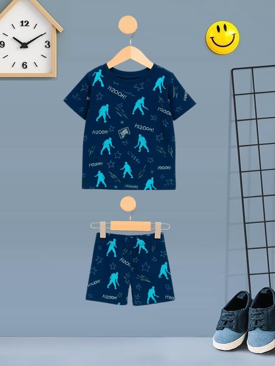 UZARUS Kids Boys’ Printed T-Shirt and Shorts Combo Set | Comfortable Summer Wear | Daily Casual Outfit |