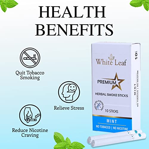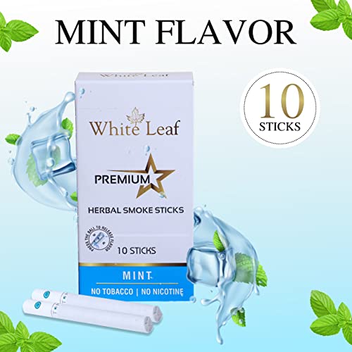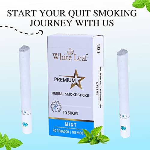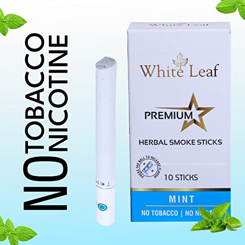 White Leaf Premium Herbal Ayurvedic Herbs Cigarettes Mint Flavoured(Pack Of 10) 100% Tobacco Free And Nicotine Free |Made With Ayurveda Natural Herbs Clove, Tulsi, Cinnamon & Green Tea(Non Addictive)