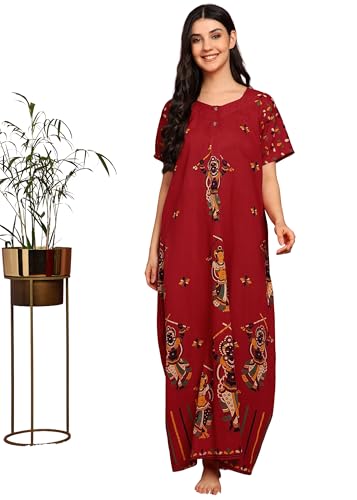 NILOUFO Women’s Cotton Maxi Nighty – Soft Printed Sleepwear Gown, Ankle-Length Night Dress, Free Size, Pack of 1