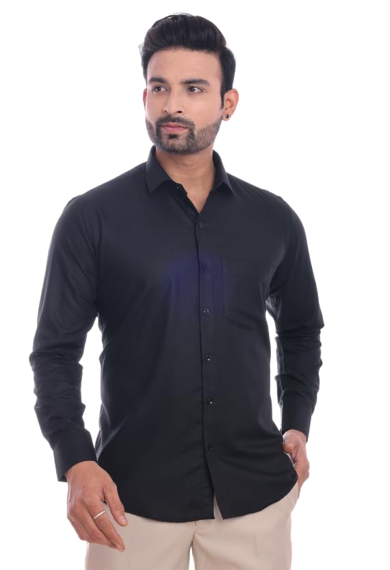 Colours ‘n’ Collars Men’s Casual & Formal Solid Shirt | Regular Fit | Full Sleeve Cotton Blend Shirt for Men | Button-Down Formal & Casual Wear