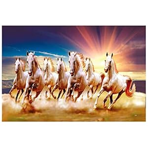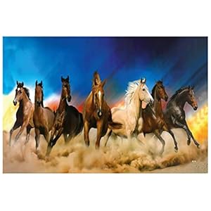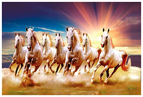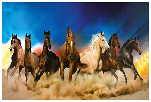 SAF paintings 7 Running Horses Vastu UV Textured Wall Painting for Home Decoration, Office, Gym, College Wall decoration Painting 12 Inch x 18 Inch MDF1457