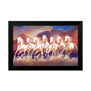 SAF paintings 7 Running Horse Vastu UV Textured Home Decorative Gift Item Painting Framed Painting 20 Inch X 14 Inch SANFH6786