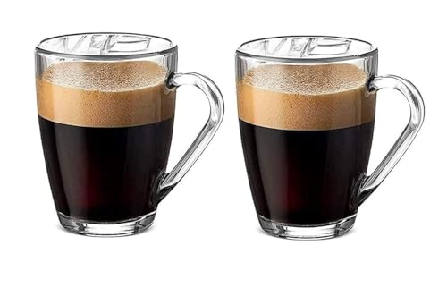 Glass Tea Cup 200 ML, Set of 2 Soup Mug Modern Glasses Tea-Coffee Mug with Convenient Solid Handle Mug Set for Tea, Coffee, Juice, Hot & Cold Drinks, Espresso, Cappuccino