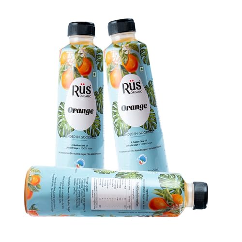Rus Organic Orange Juice | Cold-Pressed & 100% Natural | No Added Sugar or Preservatives | Immunity Booster | Rich in Antioxidants | Refreshing Summer Drink | Pack of 2 (1000ml Each) | Travel Juice | Real Oranges