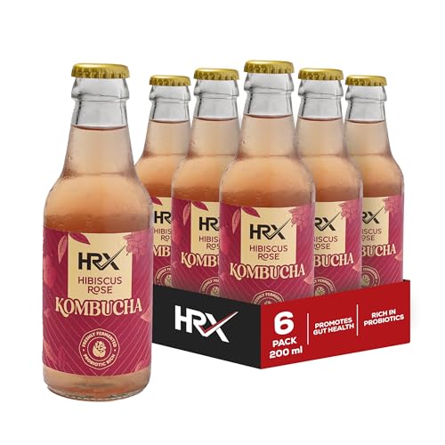 HRX Hibiscus Rose Kombucha | Freshly Fermented | Probiotic-Rich | Promotes Gut Health – 200ml (Pack of 6)